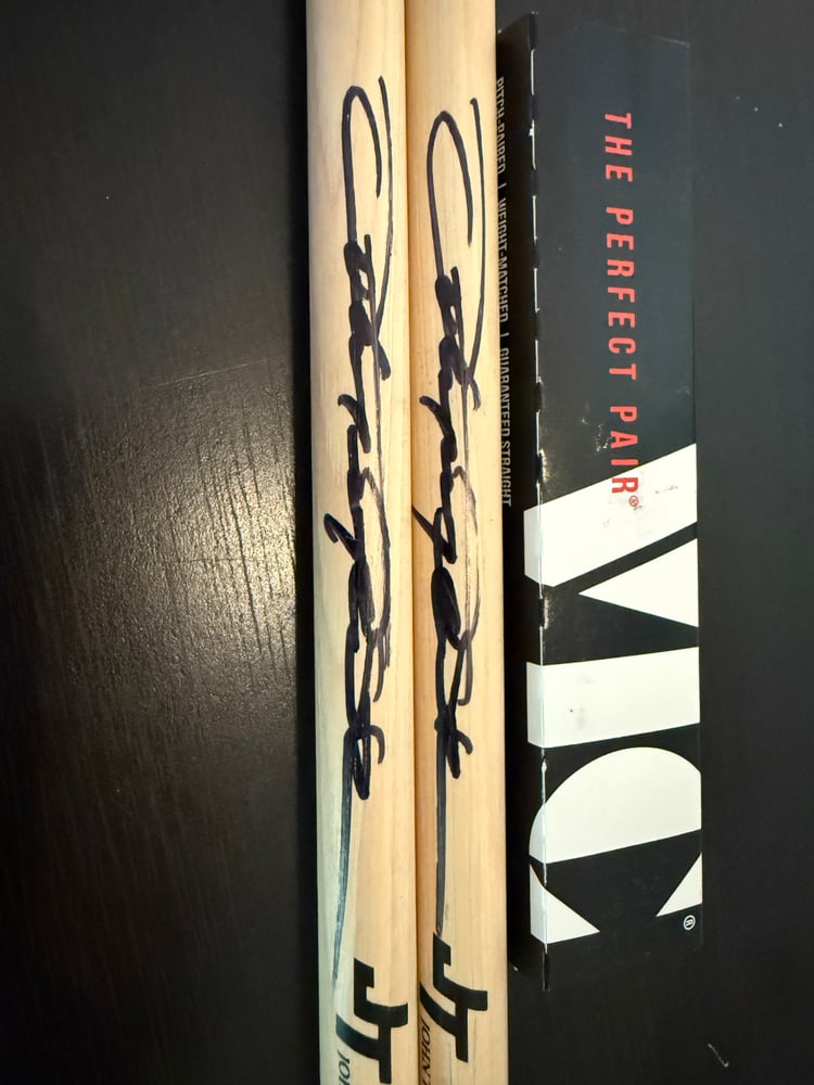 JT CULT Black logo Signed pair of Vic Firth Drumsticks.