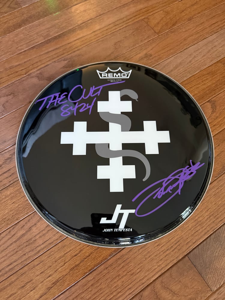 Signed Snakes & Crosses Drum Head in Purple.